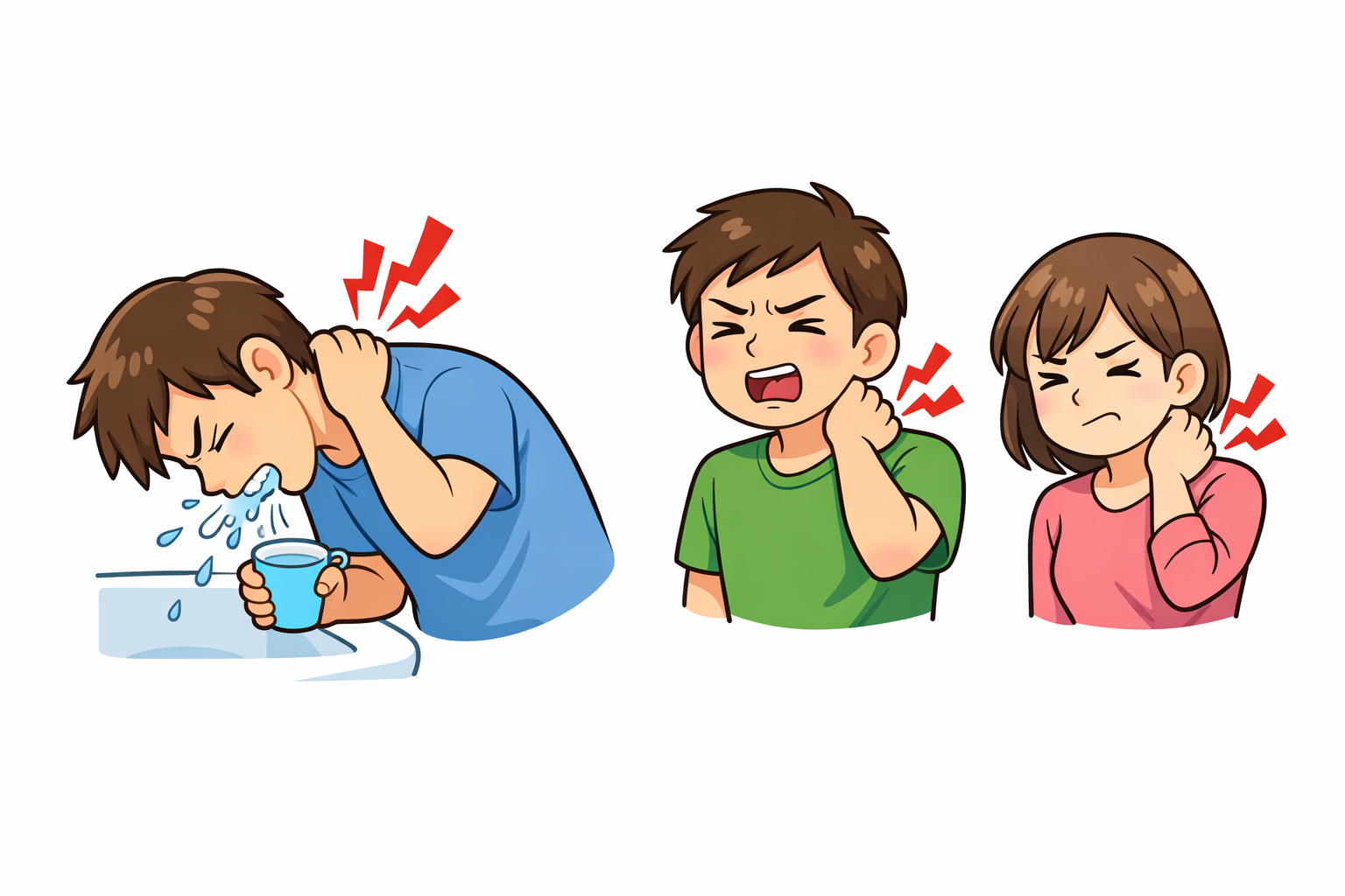 「なんとなく違和感があったけど、うがいをした瞬間にグキッと痛みが走った…」