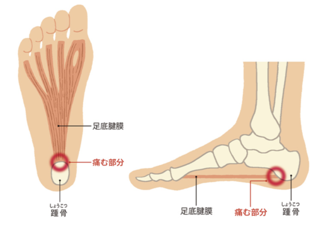 足底筋膜炎とは、かかとから足の指の付け根にかけて伸びる「足底筋膜」に炎症が起きる疾患です。