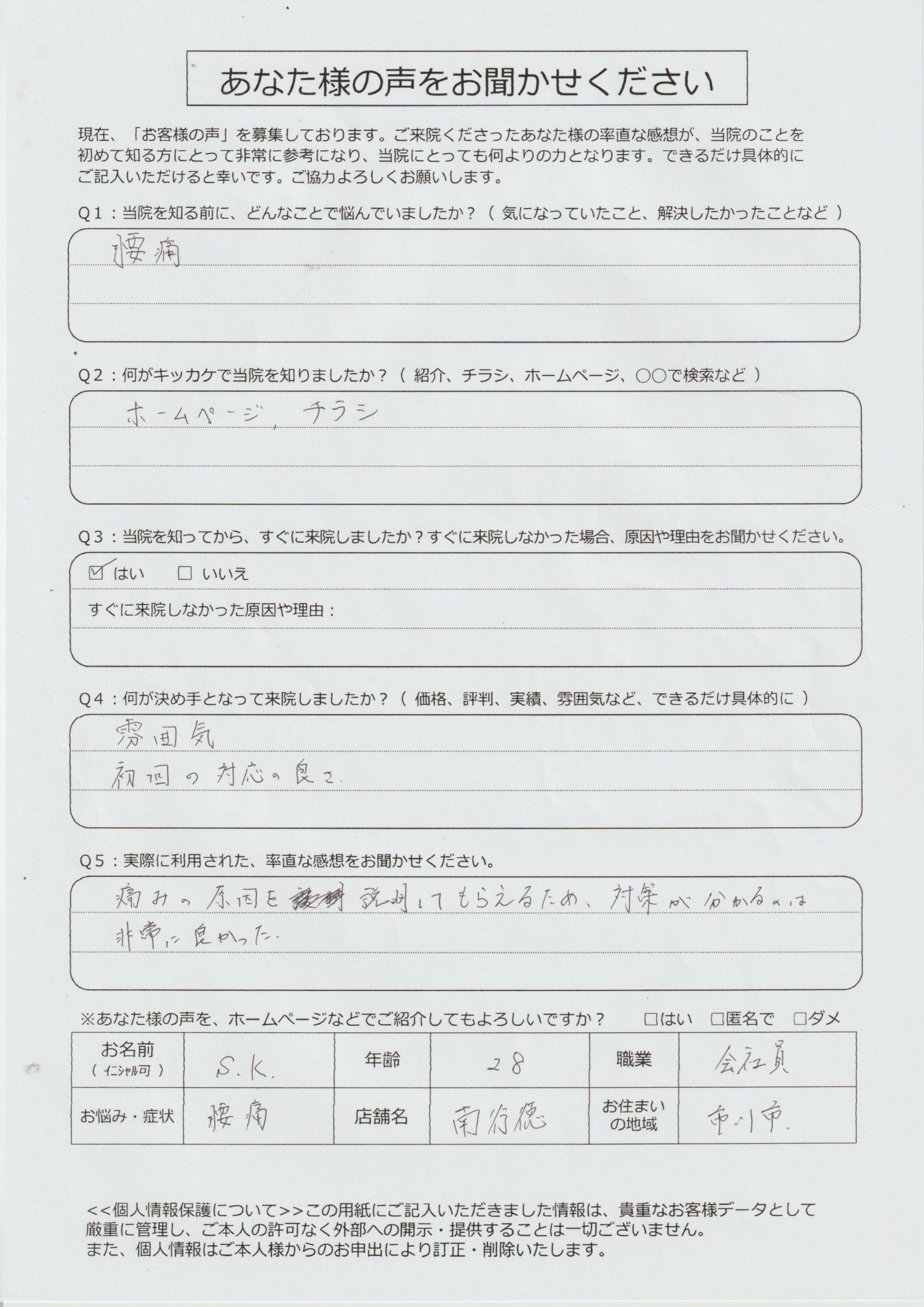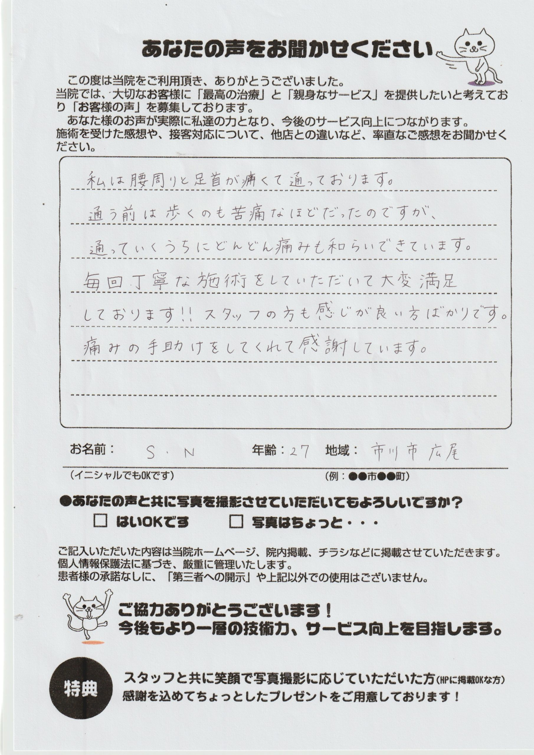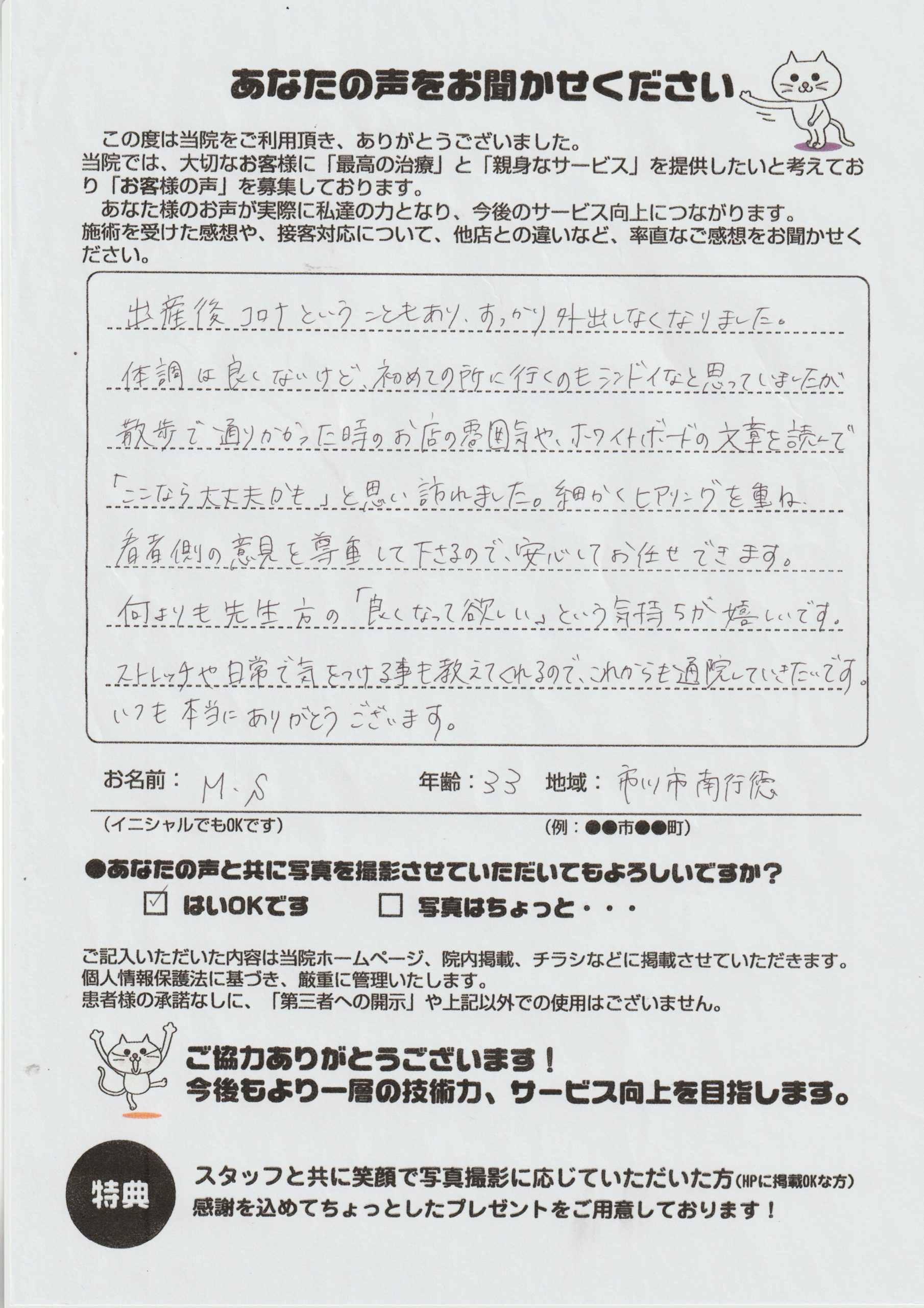 ストレッチや日常で気をつける事も教えてくれるので、これからも通院していきたいです。
